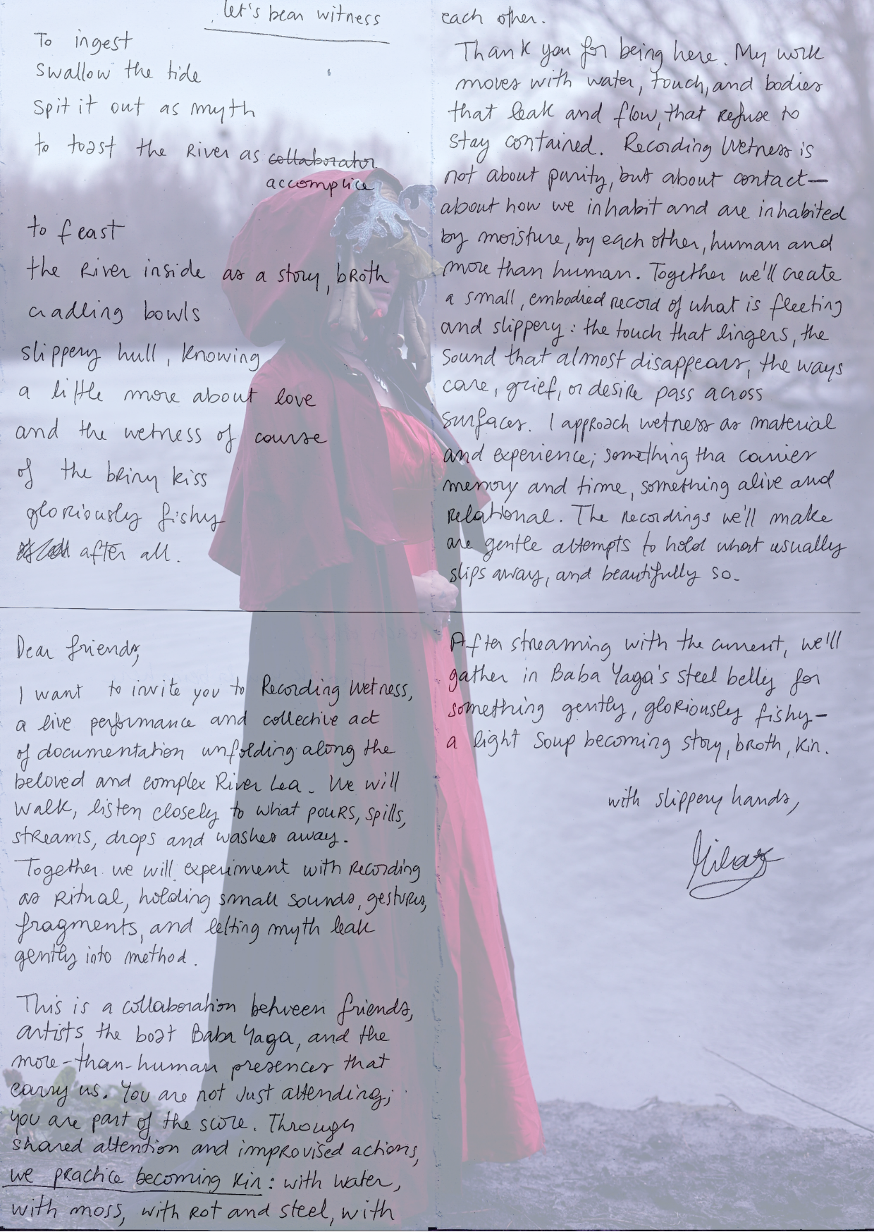 This is a collaboration between friends, artists, the boat Baba Yaga, and the more-than-human presences that carry us.